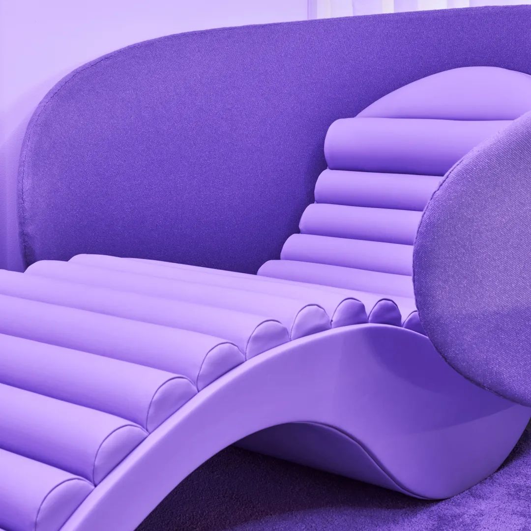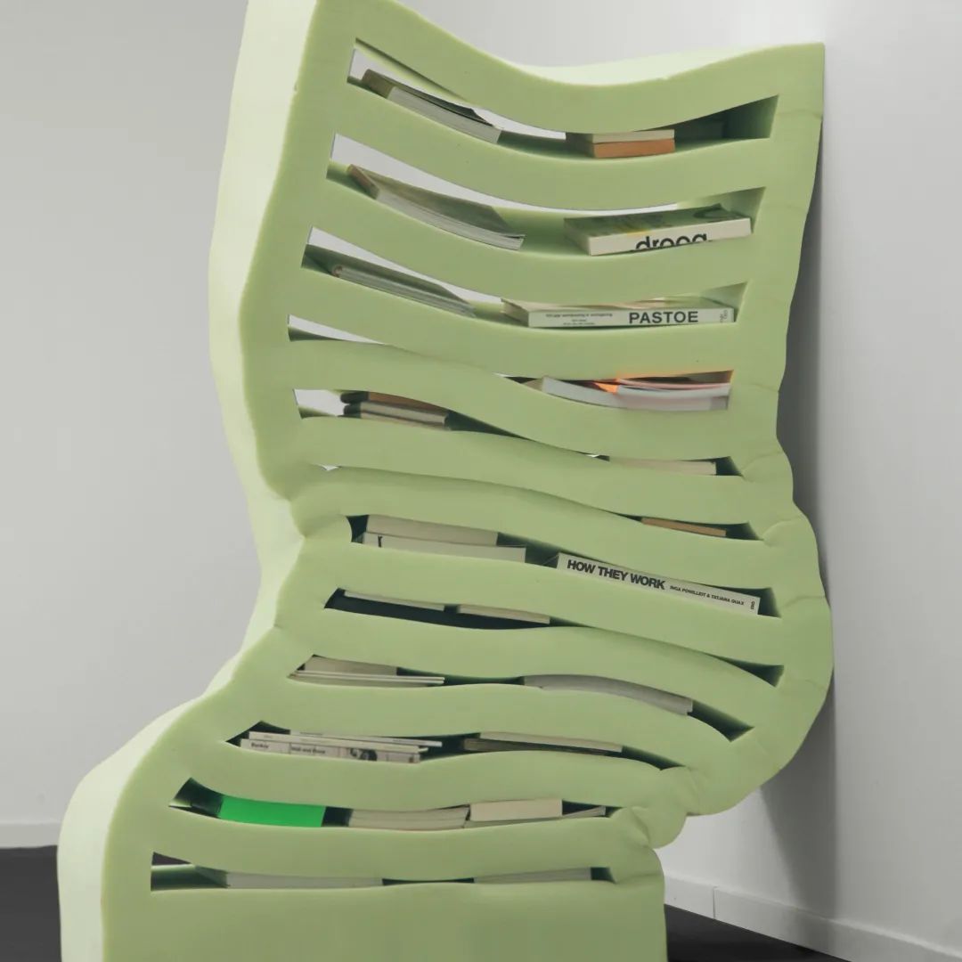 荷蘭設計師Dewi van de Klomp用綠色和粉紅色的泡沫橡膠制成了這些彎曲的架子,綠色和粉紅色的泡沫橡膠通常用于緩沖汽車座椅和墻壁的隔熱材料。