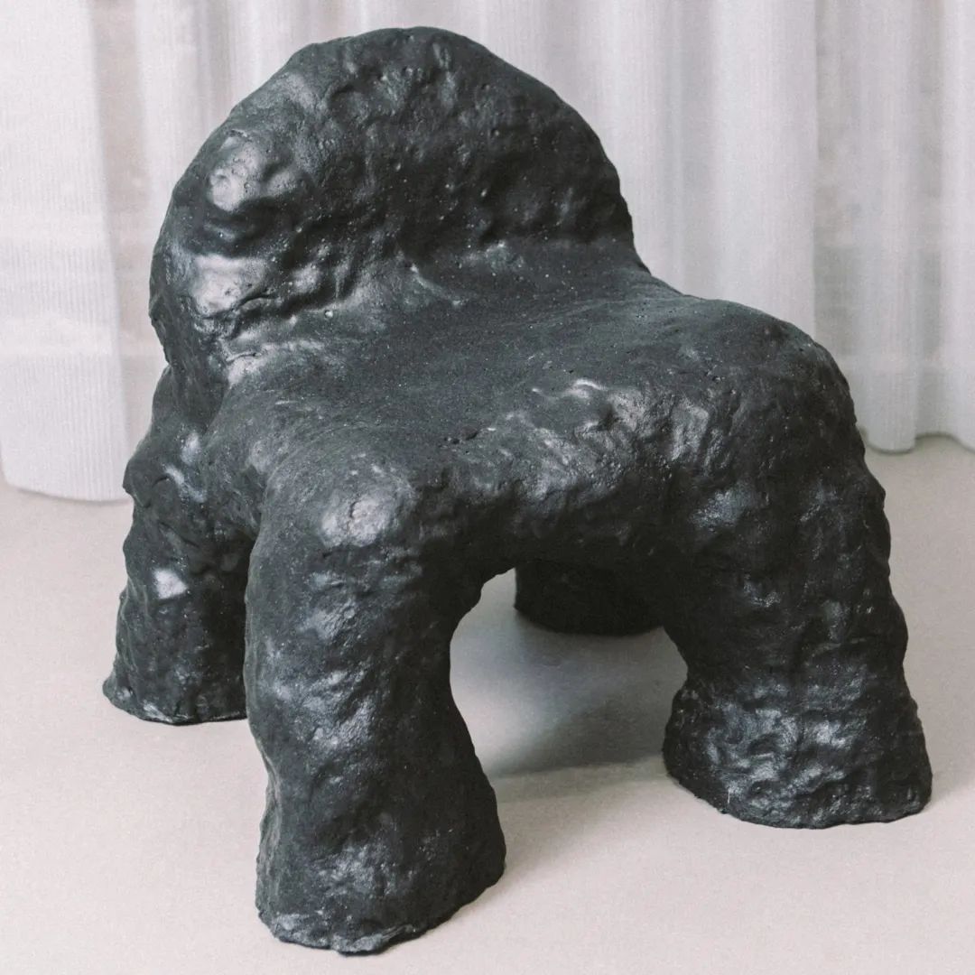 從遠處看,起伏不平的椅子表面就像一塊光滑的黑色石頭,但實際上是由設計師設計的一種粘糊狀,可生物降解的木炭泡沫復合材料制成的。