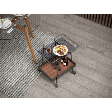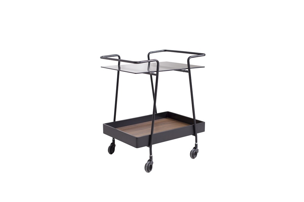 煙灰色鋼化玻璃面板+黑啞光托盤+胡桃木三聚氰胺板裝飾板+黑啞光金工件