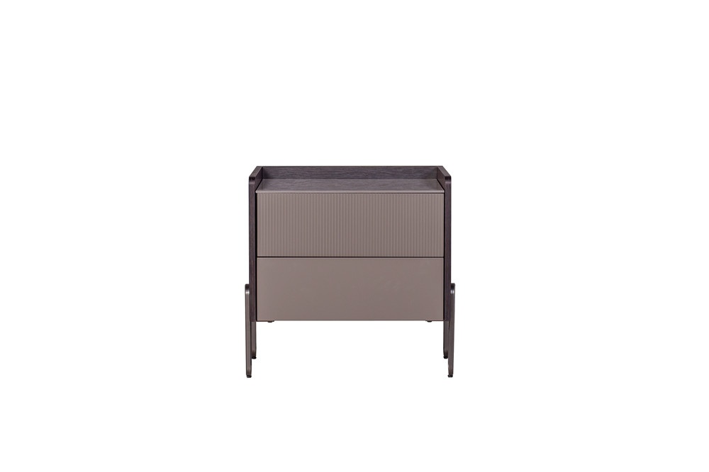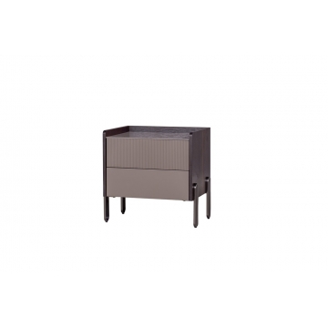 普佩石巖板面板+煙熏木皮主體+石色啞光抽面 +拉絲灰金金工腳