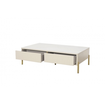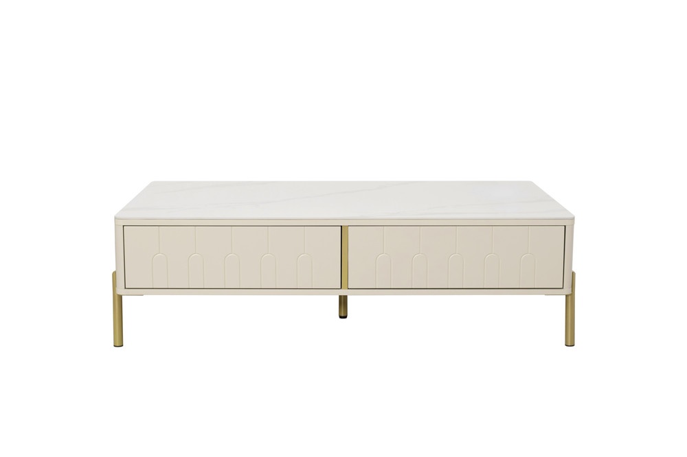 卡塔金巖板面板+米灰啞光主體+金色金工腳、裝飾條