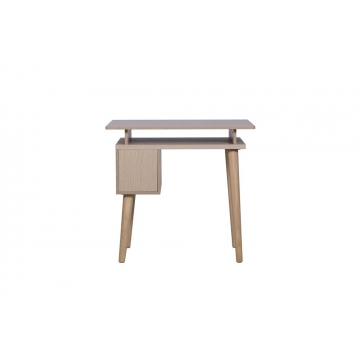 橡木原色三聚氰胺板(PB)+抽盒淺灰布紋三胺板+拉手黃銅色(外購)+橡膠木做清漆腳