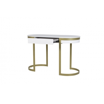 主體抽面白亮光+淺灰布紋三聚氰胺板+亮銅色金工腳